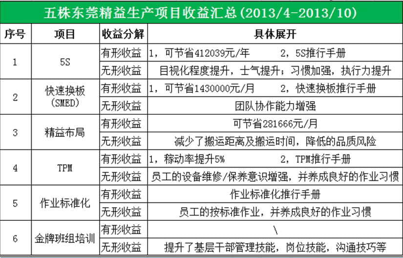 4、實施管理工具:包括5S與目視化管理、快速換板、精益布局(減少搬運浪費)、TPM(設(shè)備保養(yǎng)、維護、稼動率提升);