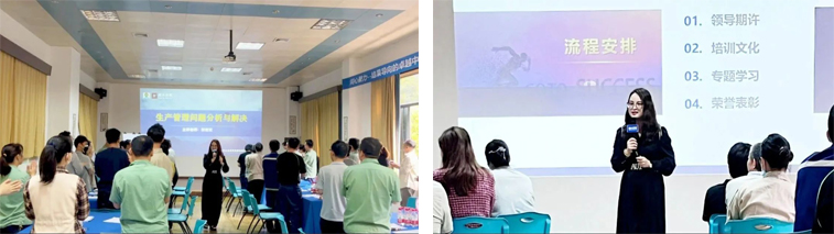 凃總在開營儀式上表達(dá)了公司對(duì)此次訓(xùn)練營成果的期許,希望大家?guī)е鴨栴}、帶著使命參與培訓(xùn),結(jié)合產(chǎn)品損耗、報(bào)廢率、產(chǎn)品品質(zhì)等生產(chǎn)相關(guān)數(shù)據(jù),認(rèn)真思考生產(chǎn)流程中可能存在的問題,在訓(xùn)練營中進(jìn)行查缺補(bǔ)漏。同時(shí),希望所有參訓(xùn)學(xué)員保持空杯心態(tài),在培訓(xùn)中持續(xù)提升技能,將課程所學(xué)知識(shí)轉(zhuǎn)化為公司經(jīng)營結(jié)果,為公司創(chuàng)造價(jià)值的同時(shí)實(shí)現(xiàn)自我成長與能力提升。
