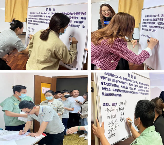 此次訓(xùn)練營基于佳麗化工現(xiàn)階段發(fā)展瓶頸問題,定制系列課程,采用“認(rèn)知改變-主題邏輯-方法論-實(shí)施步驟-工具表單-案例講解-小組演練-上臺(tái)分享-講師點(diǎn)評(píng)”的教學(xué)方式,每節(jié)課圍繞3個(gè)核心內(nèi)容講深講透,并結(jié)合主題內(nèi)容制定可落地實(shí)施的具體動(dòng)作,確保課后得到有效應(yīng)用。