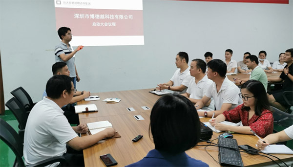 項(xiàng)目啟動(dòng)會(huì)上,博德越王總表示,公司現(xiàn)在發(fā)展越來(lái)越快,需要更優(yōu)的管理模式,現(xiàn)在公司邀請(qǐng)遠(yuǎn)大方略的老師來(lái)做指導(dǎo),將對(duì)精益生產(chǎn)及交付管理系統(tǒng)一改到底。改善前期是非常痛苦的,但是為了公司更好的發(fā)展,痛苦也要改。遠(yuǎn)大方略在精益生產(chǎn)和交付改善等方面都是非常專業(yè),所有人都要無(wú)條件配合遠(yuǎn)大的老師做好此次改善項(xiàng)目。
