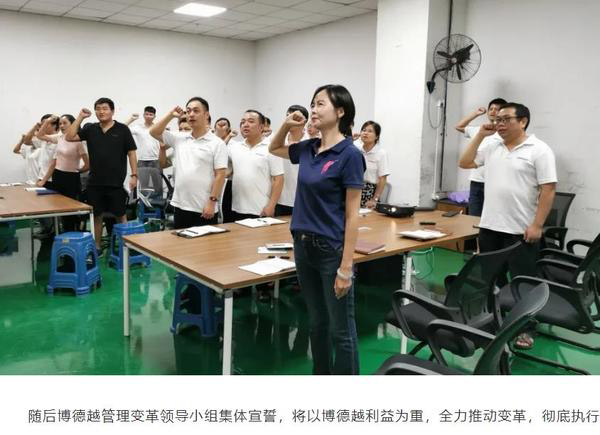 隨后博德越管理變革領(lǐng)導(dǎo)小組集體宣誓,將以博德越利益為重,全力推動(dòng)變革,執(zhí)行決策,完成博德越使命,凝聚新力量,開(kāi)創(chuàng)新未來(lái)。
