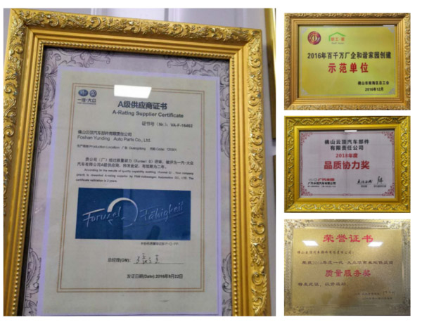 云頂汽車部件一直致力于為一線品牌汽車提供服務(wù),憑借其專業(yè)技術(shù),精工品質(zhì),硬核實(shí)力,獲得客戶好評(píng),被評(píng)為2016年百千萬廠企和諧家園創(chuàng)建“示范單位”,獲一汽-大眾華南基地供應(yīng)商“質(zhì)量服務(wù)獎(jiǎng)”,廣汽豐田汽車供應(yīng)商“品質(zhì)協(xié)力獎(jiǎng)”等多項(xiàng)榮譽(yù)