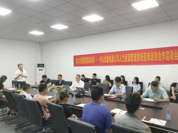 中山市優(yōu)益電器實業(yè)有限公司(以下簡稱“優(yōu)益電器”)攜手遠大方略啟動《人力資源組織系統(tǒng)》管理改善項目。遠大方略咨詢師張老師、程老師入駐優(yōu)益電器,通過前期對優(yōu)益電器公司的深入調(diào)研與探討,本期項目主要圍繞戰(zhàn)略目標梳理、組織與職位規(guī)劃設計、核心人才選聘、人員任用管理、人才激勵與培育展開改善。