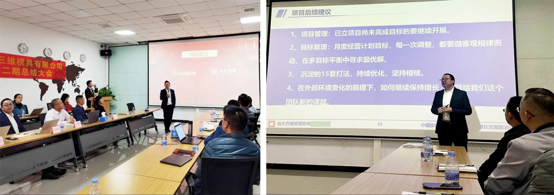 會(huì)上,項(xiàng)目老師表示嚴(yán)峻的市場(chǎng)環(huán)境決定了企業(yè)必須不斷變革才能持續(xù)發(fā)展。金三維高層在市場(chǎng)競(jìng)爭(zhēng)激烈的時(shí)候選擇與遠(yuǎn)大方略合作開啟變革,是站在長(zhǎng)遠(yuǎn)發(fā)展的角度做出的戰(zhàn)略性決策。通過兩期項(xiàng)目的開展,我們欣喜的看到公司的各個(gè)方面都在持續(xù)向好變化,團(tuán)隊(duì)執(zhí)行力與凝聚力也逐漸增強(qiáng)。相信在高瞻遠(yuǎn)矚的公司高層與優(yōu)秀員工的共同努力下,金三維能夠在復(fù)雜的市場(chǎng)環(huán)境中盡快調(diào)整好狀態(tài),支撐企業(yè)業(yè)績(jī)實(shí)現(xiàn)戰(zhàn)略性增長(zhǎng)。