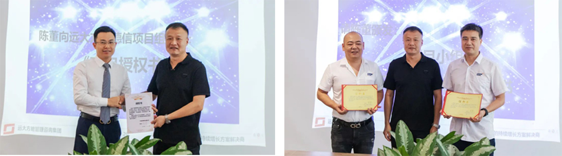 會(huì)上,陳董為遠(yuǎn)大方略項(xiàng)目組頒發(fā)了授權(quán)書(shū),授予項(xiàng)目組相關(guān)管理權(quán)力;為項(xiàng)目相關(guān)負(fù)責(zé)人頒發(fā)任命書(shū),全力推動(dòng)變革。