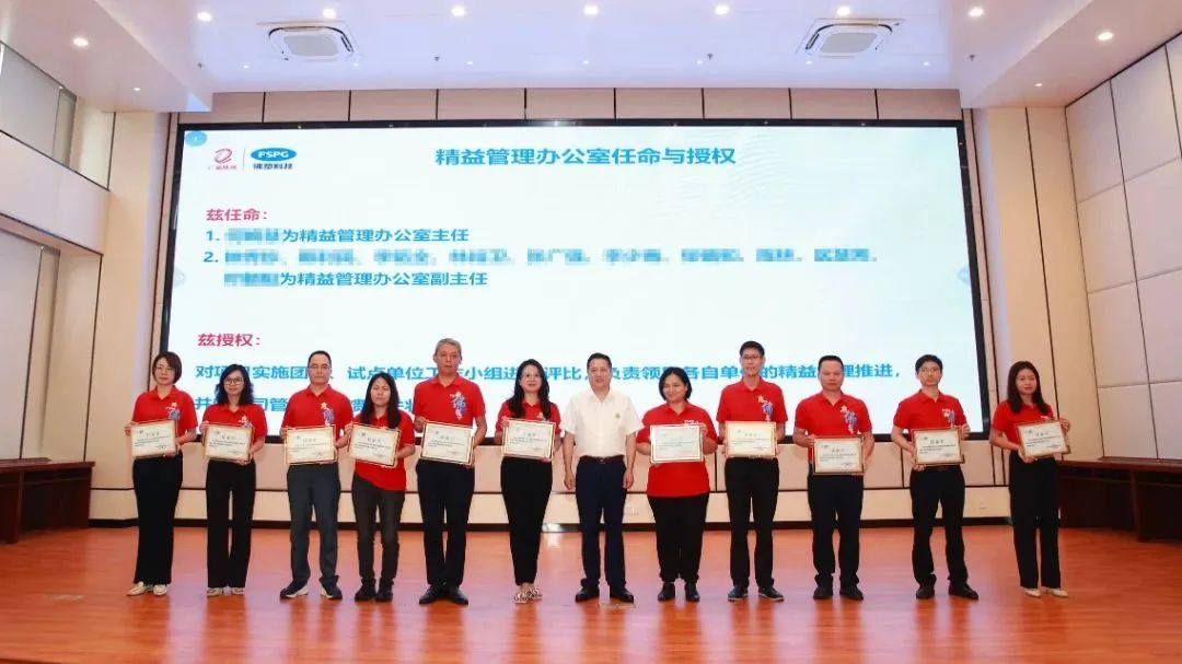 會議上,佛塑科技精益辦主任何婉慧發(fā)布精益二期項目組織架構(gòu)和項目管理機制。公司黨委副書記、工會主席葉志超為項目老師和項目相關(guān)負責(zé)人頒發(fā)了授權(quán)任命書,公司黨委副書記、總裁馬平三向各重點推進單位頒發(fā)項目目標(biāo)責(zé)任狀。全員參與,全力推動精益管理變革。