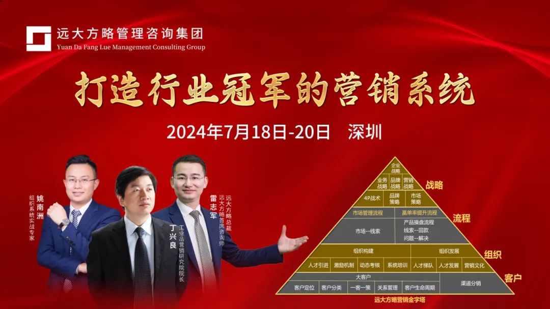 7月18日-20日,遠(yuǎn)大方略《打造行業(yè)冠軍的營銷系統(tǒng)》,三大實(shí)戰(zhàn)導(dǎo)師聯(lián)袂授課,深度剖析成功咨詢實(shí)戰(zhàn)案例,學(xué)會(huì)一套營銷系統(tǒng)打造的系統(tǒng)方法,實(shí)現(xiàn)可持續(xù)增長。