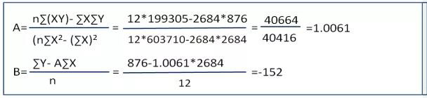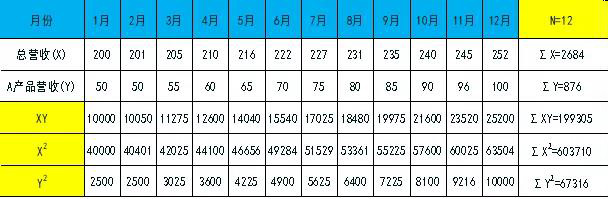 移動平均法比算術(shù)平均法先進(jìn)。它是指在積累了n期銷售量的基礎(chǔ)之上,按照事先確定的期數(shù)m(m 預(yù)測銷售量=最后m期的平均銷售量+趨勢值 趨勢值=最后移動期的平均值-上一個移動期的平均值 實(shí)例如下: 已知:如下的銷量資料,假定銷售量的移動期m為3(季度),趨勢平均值s移動期為3,時間序列期數(shù)n為11。要求計(jì)算:按移動平均法預(yù)測2018年12月的銷售量。 解:依題意計(jì)算各期銷售量移動平均值、趨勢值和趨勢值移動平均值,其結(jié)果如下示例圖2: 最后一期平均值:(86+91+95)/3=90.67(萬元) 趨勢值=90.67-85.67=5(萬元) 所以12月份的預(yù)測營收=90.67+5=95.67(萬元) 移動平均法,既考慮了銷售量的移動平均數(shù),又考慮了趨勢值的移動平均數(shù),邏輯清晰。除移動平均法以外,我們常用的還有加權(quán)平均法,加權(quán)法相對比較簡單,但有時我們也會加權(quán)平均法組合成加權(quán)移動平均法。 我們再來看另外一種運(yùn)用廣泛因果關(guān)系的預(yù)測分析方法,即線性回歸分析法。 2.線性回歸分析法: 線性回歸分析法也稱二元一次直線分析法,它的模型是Y=AX+B,數(shù)學(xué)有一定基礎(chǔ)的知道,也就是這類二元一次線性直線。我們先以一個例子假以說明,如下示例圖3: 要求: 用回歸直線分析法建立A產(chǎn)品的營收預(yù)測模型; 預(yù)測2019年1月份A產(chǎn)品的營收額; 第一步進(jìn)行調(diào)表格調(diào)整,如下示例圖4: ▲示例圖4 則線性相關(guān)系數(shù)R約為1,表明X與Y之間是正相關(guān),符合線性回歸性。如下 示例圖5: 依據(jù)公式線性公式可得出A與B的取值,如下示例圖6: 所以:Y=AX+B=1.0061X-152 2019年1月份總營收當(dāng)255時,則A產(chǎn)品的營收約為:1.0061*255-152=104.5(萬元) 或許有人會說這個計(jì)算的過程相對較為復(fù)雜,有沒有相對更簡單的方法?答案是肯定的。在EXCEL函數(shù)中,F(xiàn)ORECAST回歸預(yù)測法,正是上面推導(dǎo)的一個應(yīng)用工具函數(shù)。具體使用方法如下示例圖7,計(jì)算出結(jié)果是104.2萬元;其結(jié)果與上面計(jì)算得出的104.5兩者的吻合度99.97%,是非常高的。 ▲示例圖7 二、修正預(yù)測數(shù)據(jù) 在實(shí)際的管理中,因?yàn)樘厥獾墓?jié)點(diǎn)等因素,部分?jǐn)?shù)據(jù)會異常突變,我們可稱之這異常數(shù)據(jù),在做數(shù)據(jù)分析時,我們?yōu)楸苊猱惓?shù)據(jù)平均化,須提前把那一類的數(shù)據(jù)單獨(dú)加工處理。 1.異常節(jié)點(diǎn)維度 (1) 特殊時期(春節(jié)、國慶、雙11、黑色星期五等)活動的趨勢; (2) NPI(新產(chǎn)品導(dǎo)入)快速切入要求; (3) 滯銷或呆滯的要求; (4) ECN(工程切換)要求; (5) MPQ(較小包裝量)、MOQ(較小訂單量)等原因; (6) 增量幅度; (7) 重大品質(zhì)客訴; 2.預(yù)測期數(shù) 銷售預(yù)測時,為避免數(shù)據(jù)短期波動,我們在取數(shù)時應(yīng)考慮的期數(shù)盡量要長。 (1) 做年度預(yù)測,建議取近2年整年度的數(shù)據(jù),即N=24; (2) 做季度預(yù)測,建議取近12個月年數(shù)據(jù),即N=12; (3) 做月度預(yù)測,建議取近6個月年數(shù)據(jù)。即N=6; 實(shí)際的管理中,無論是銷售管理還是庫存管理,要做到精細(xì)化預(yù)測其難度遠(yuǎn)不僅限以上要求。還有許許多多的無法控制的外在因素,比如:大的經(jīng)濟(jì)環(huán)境、同行競爭、競爭品等。只有我們熟練地掌握預(yù)測的工具并科學(xué)加以運(yùn)用,同時結(jié)合適度提前考慮等外在因素可能會造成的影響,唯有這樣,我們的預(yù)測才能做到貼合于實(shí)際,也才會更精準(zhǔn)。