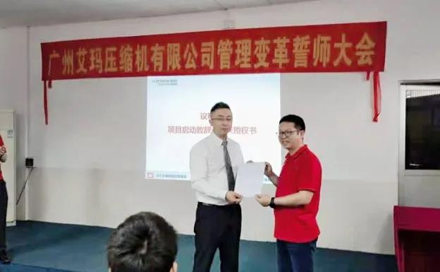 致辭后,謝總向遠(yuǎn)大方略老師頒發(fā)了授權(quán)委托函;副總經(jīng)理黃君鳳女士宣讀了廣州艾瑪組織系統(tǒng)管理變革小組架構(gòu)、成員名單及任命書(shū),小組成員現(xiàn)場(chǎng)簽訂了責(zé)任書(shū)。