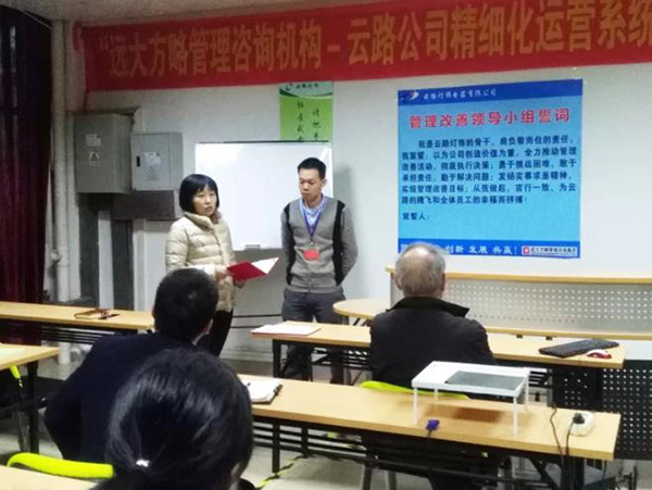 2018年1月9日,云路燈飾電器有限公司(以下簡稱“云路燈飾”)精細(xì)化運(yùn)營管理咨詢項目全面啟動,攜手遠(yuǎn)大方略管理咨詢公司書寫企業(yè)經(jīng)營管理的新征程。遠(yuǎn)大方略咨詢師鄧發(fā)軍、寧岳華、宋世倦老師進(jìn)駐企業(yè)開展項目輔導(dǎo),云路燈飾核心管理骨干學(xué)員全程參與,研修企業(yè)精細(xì)化管理的智慧。