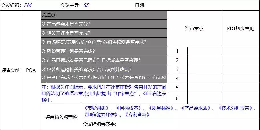 評審過程需要有人負責,一般來講系統(tǒng)工程師是技術指導者,PQA是過程主持人, PDT核心組成員反映部門問題,代表本領域提出專業(yè)意見,并代表功能部門承擔責任,項目領導以業(yè)務需要為出發(fā)點對技術問題做決策。