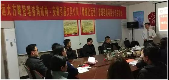 2019年4月,安徽百盛文具有限公司(以下簡稱“百盛文具”)攜手遠(yuǎn)大方略遠(yuǎn)大方略管理咨詢公司啟動《精細(xì)化運營》管理改善項目。遠(yuǎn)大方略項目總監(jiān)程波老師,項目組長唐光輝老師入駐百盛文具。通過與百盛文具公司核心團隊的探討,本次咨詢項目主要圍繞會議模式變革、提升庫存管理水平、組織建設(shè)、交付系統(tǒng)、效率提升等內(nèi)容展開,達到促進團隊成長、降本增效的管理變革目的。
