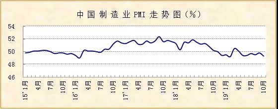 中國物流與采購聯(lián)合會、國家統(tǒng)計局服務(wù)業(yè)調(diào)查中心發(fā)布的2019年10月份中國制造業(yè)采購經(jīng)理指數(shù)(PMI)為49.3%,較上月下降0.5個百分點,創(chuàng)今年二季度以來較低水平。分項指數(shù)顯示,本月市場需求降至收縮區(qū)間,企業(yè)生產(chǎn)和采購增速放緩。但經(jīng)濟結(jié)構(gòu)優(yōu)化,新動能和消費品行業(yè)加速擴張,就業(yè)相對穩(wěn)定。綜合來看,經(jīng)濟增速放緩,發(fā)展質(zhì)量提升。