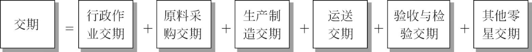 (6)其他零星交期。此外,還包括一些不可預(yù)見的外部或內(nèi)部因素所造成的延誤,以及供應(yīng)商預(yù)留的緩沖時間。