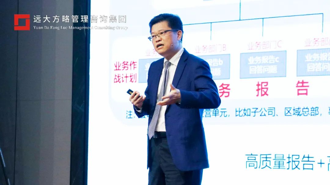 本次戰(zhàn)略課程將主要從“戰(zhàn)略復(fù)盤、戰(zhàn)略思維、戰(zhàn)略規(guī)劃、再到戰(zhàn)略解碼”等方面逐層剖析,全面梳理華為從戰(zhàn)略到執(zhí)行的全流程,課程開始之前遠(yuǎn)大方略總經(jīng)理為大家梳理了整個課程的框架;同時介紹了舉辦此次課程的初心,隨后雷老師請出了今天課程的主講老師——楊?老師主講。楊老師首先從“戰(zhàn)略復(fù)盤”的角度,以“一報一會”引入,即“經(jīng)營分析報告”和“經(jīng)營分析會議”。