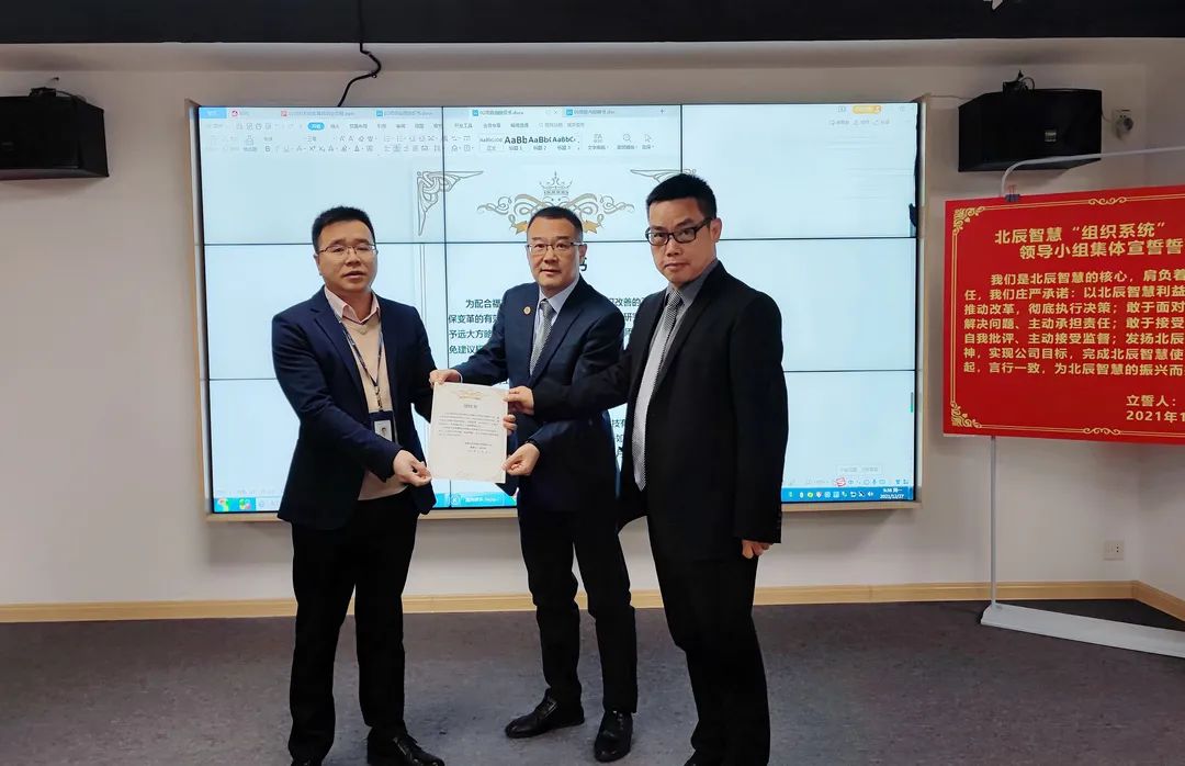 啟動會最后,潘總給咨詢項目“變革領導小組”頒發(fā)了任命書,集體進行了宣誓,大家信心滿滿,相信此次改善定能給北辰智慧帶來質(zhì)的改變。