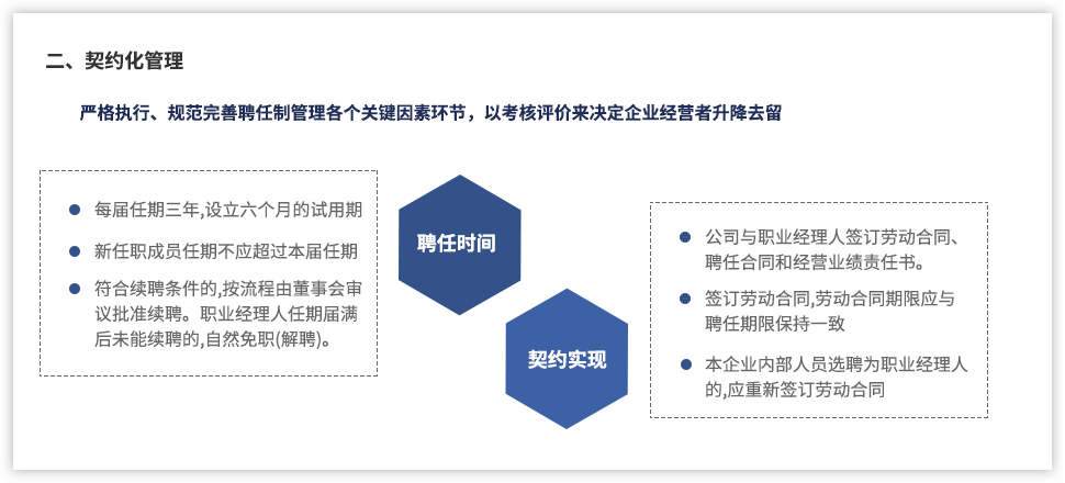 職業(yè)經(jīng)理人改革的核心目的是自上而下地為企業(yè)建立市場化的經(jīng)營機制和激勵約束機制,推動國有企業(yè)市場主體地位的落實,增強、釋放企業(yè)發(fā)展活力和潛力。遠大方略認為,職業(yè)經(jīng)理人改革是一個體系工程,其實施需要以公司治理結(jié)構(gòu)完善為先決條件,以人才發(fā)展體制機制改革為制度基礎(chǔ),以契約化管理和有效的考核、激勵、約束機制作為保障,涵蓋戰(zhàn)略引導(dǎo)、治理機制、崗位價值、薪酬策略、激勵前設(shè)、契約管理等多個方面。
