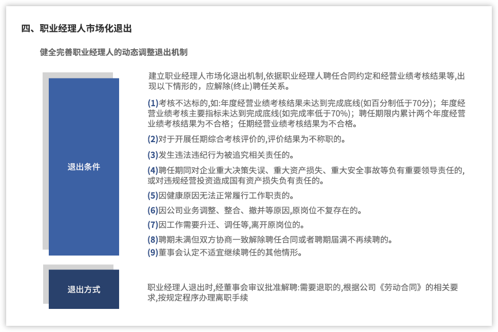 目前從中央到地方各層級政府均出臺了相關(guān)支持政策,部分重點企業(yè)也開展了相關(guān)試點改革,但在實際操作中卻普遍出現(xiàn)了職業(yè)經(jīng)理人“水土不服”、權(quán)責(zé)不清、目標不明、激勵不足等問題,制約了職業(yè)經(jīng)理人改革效果的發(fā)揮。