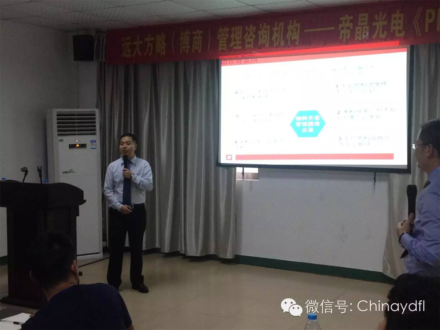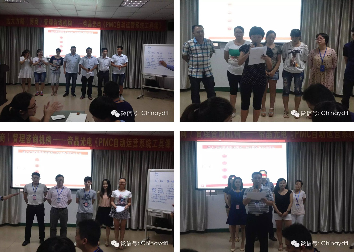 我們遠(yuǎn)大方略期望通過這一次的內(nèi)訓(xùn)課程,能夠促進(jìn)帝晶光電團(tuán)隊構(gòu)建自動運營的PMC管控模式,盡快地實現(xiàn)訂單管理平臺自動化,提升大客戶的滿意度,提高資金的周轉(zhuǎn)速度,最終實現(xiàn)企業(yè)健康可持續(xù)發(fā)展、員工自動自發(fā)做事,朝著基業(yè)長青的目標(biāo)前進(jìn)。
