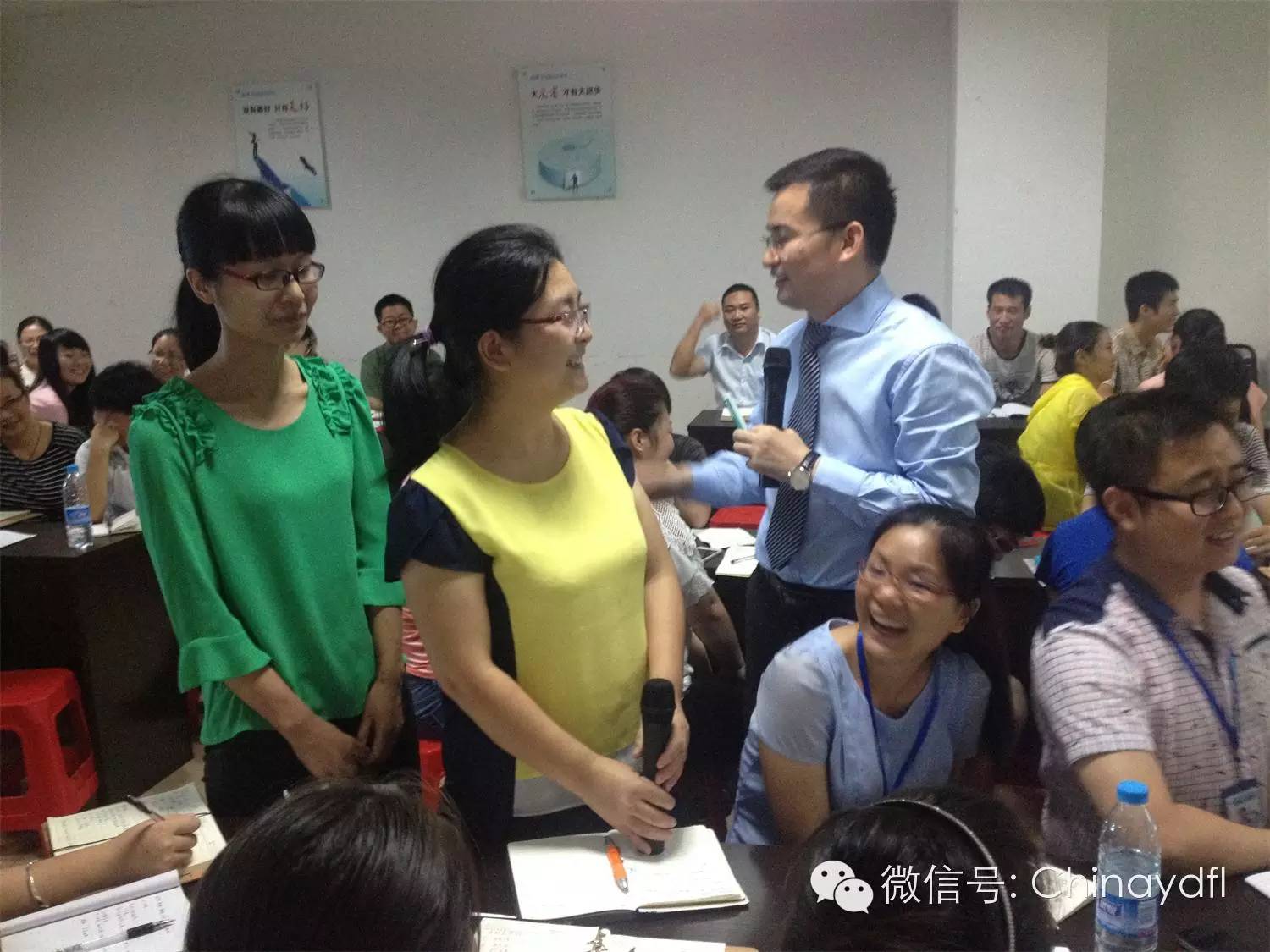 雷志軍老師與凌雪飛老師在講解管理工具的有效運用內(nèi)容,并與小組成員互動