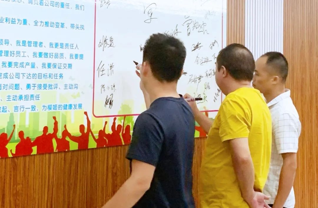 劉總表示,打破舊思維,打造新觀念及作業(yè)方法,是公司迎接時(shí)代變化及邁向更高目標(biāo)的基礎(chǔ)。開啟變革并不是否定大家過去的成績(jī),而是借助老師的專業(yè)知識(shí)和實(shí)踐經(jīng)驗(yàn),增強(qiáng)個(gè)人和組織能力,提升團(tuán)隊(duì)執(zhí)行力和戰(zhàn)斗力。希望大家積極配合支持項(xiàng)目執(zhí)行,明確自身職責(zé),在老師的帶動(dòng)下,推動(dòng)櫻姬再創(chuàng)新高。