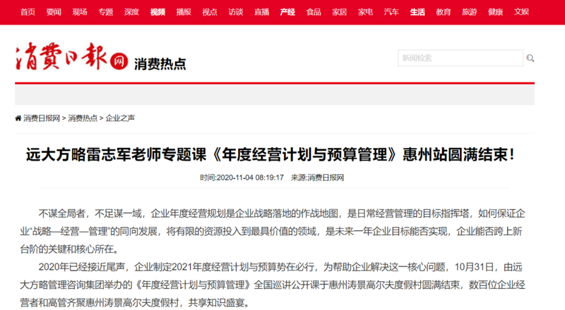 2020年已經(jīng)接近尾聲,企業(yè)制定2021年度經(jīng)營(yíng)計(jì)劃與預(yù)算勢(shì)在必行,為幫助企業(yè)解決這一核心問題,10月31日,由遠(yuǎn)大方略管理咨詢集團(tuán)舉辦的《年度經(jīng)營(yíng)計(jì)劃與預(yù)算管理》全國(guó)巡講公開課于惠州濤景高爾夫度假村結(jié)束,數(shù)百位企業(yè)經(jīng)營(yíng)者和高管齊聚惠州濤景高爾夫度假村,共享知識(shí)盛宴。