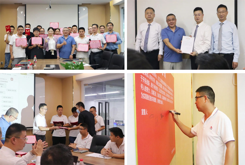 會(huì)上,公司高層為項(xiàng)目老師和項(xiàng)目小組負(fù)責(zé)人分別頒發(fā)了授權(quán)書與任命書,帶領(lǐng)大家集體宣誓,鼓舞大家全力投入變革,促成企業(yè)、員工、客戶的共贏。