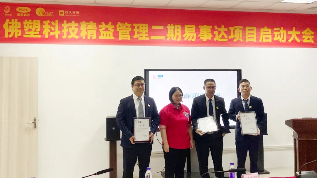 鐘總還為遠(yuǎn)大方略項(xiàng)目組頒發(fā)了個(gè)人聘書及團(tuán)隊(duì)授權(quán)書,為精益管理推進(jìn)辦公室成員和精益管理專項(xiàng)工作組組長頒發(fā)了個(gè)人任命書。精益管理專項(xiàng)工作組組長簽署了《佛塑科技易事達(dá)公司精益管理項(xiàng)目承諾書》,并承諾帶領(lǐng)小組全體成員全力以赴,達(dá)成精益管理KPI目標(biāo)。