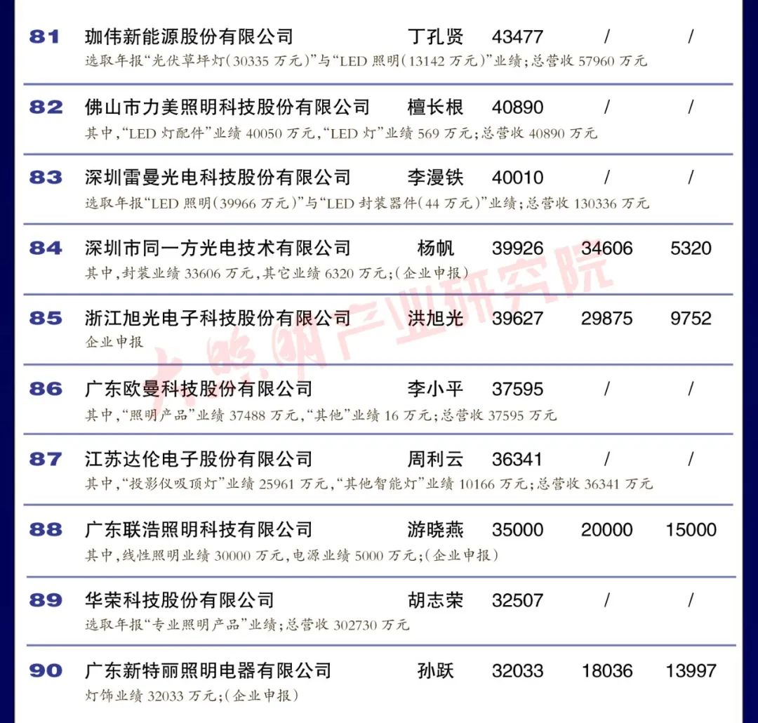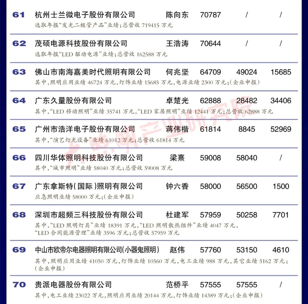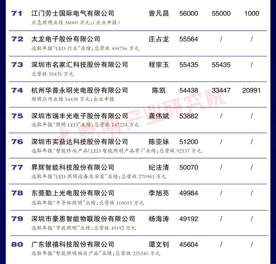 從銷售規(guī)模來看,中國led燈排行榜中有3家企業(yè)銷 售突破100億元,有4家企業(yè)銷售在50 100億元之間,有35家企業(yè)銷售在10-50億元之間,有35家企業(yè)銷售在5-10億元之間,余23家企業(yè)銷售在5億元以下。