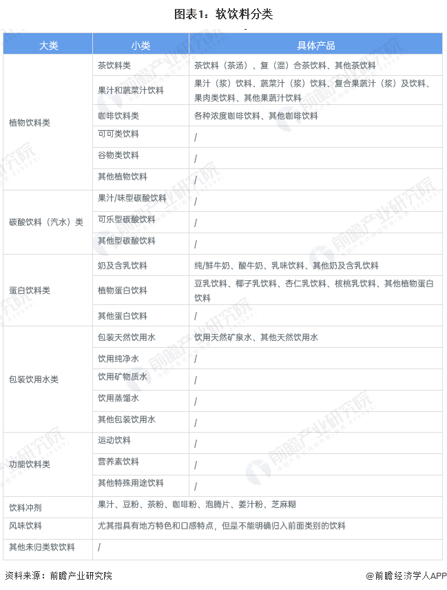 我國(guó)軟飲料行業(yè)經(jīng)過(guò)40余年的發(fā)展,形成了產(chǎn)品種類繁多,品牌數(shù)目龐大的產(chǎn)品體系,從產(chǎn)品屬性類別上劃分,中國(guó)軟飲料行業(yè)可以劃分為如下多種細(xì)分市場(chǎng)。不同的產(chǎn)品具有其獨(dú)特的屬性,符合各種人群的特殊需求,無(wú)論男女老少,總有自己中意的產(chǎn)品和品牌。