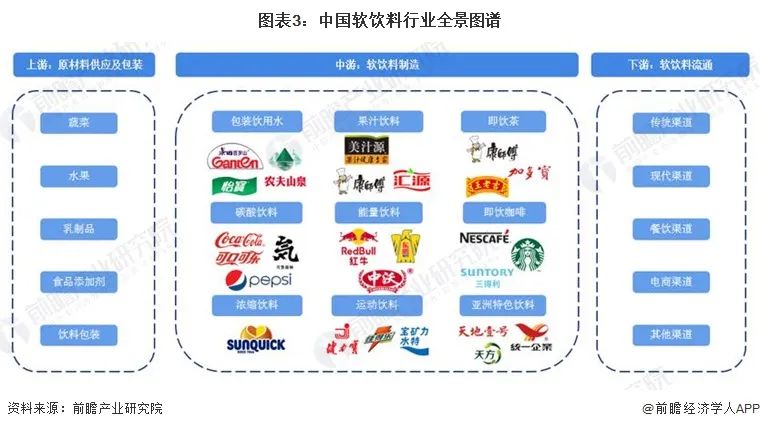 2、產(chǎn)業(yè)鏈剖析:包括原材料供應(yīng)及包裝、軟飲料制造和軟飲料流通環(huán)節(jié)