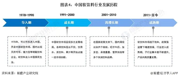 國(guó)內(nèi)軟飲料市場(chǎng)起步于1978年可口可樂(lè)進(jìn)入中國(guó),經(jīng)過(guò)起步階段、成長(zhǎng)階段、高增長(zhǎng)期等多個(gè)階段,市場(chǎng)規(guī)模不斷擴(kuò)大、品類不斷擴(kuò)寬,目前已經(jīng)成為全球最大的軟飲料市場(chǎng)之一。在軟飲料行業(yè)的發(fā)展過(guò)程中,本土軟飲料企業(yè),如農(nóng)夫山泉、康師傅、怡寶等不斷壯大,逐漸具備與國(guó)際大品牌抗衡的能力,牢牢占據(jù)中國(guó)軟飲料市場(chǎng)的核心位置。