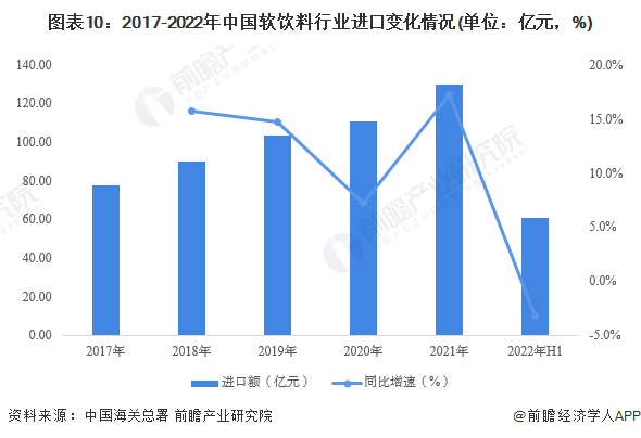 4、進(jìn)出口:軟飲料進(jìn)出口規(guī)模在2021年大幅回升