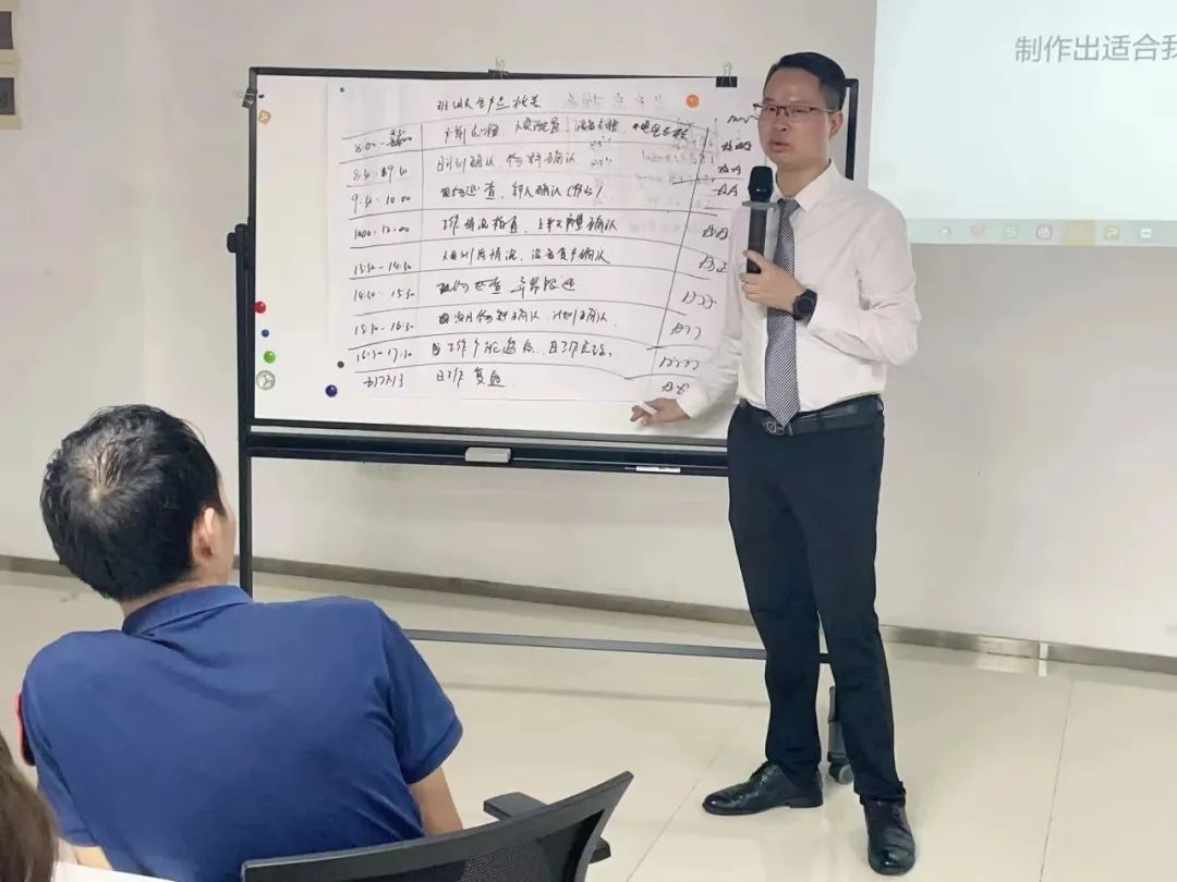 本次項目制系列課主要包括《金牌班組之標準作業(yè)》《金牌班組之動作經濟原則》《金牌班組之高效高質量早會》等十多節(jié)課程,為確保培訓內容的有效落地,此次培訓采用半天培訓+半天輔導的形式,全面提升一線班組長能力,打造金牌班組長。培訓開始之前首先進行了開營儀式,營造濃厚學習氛圍,明確學習目標。