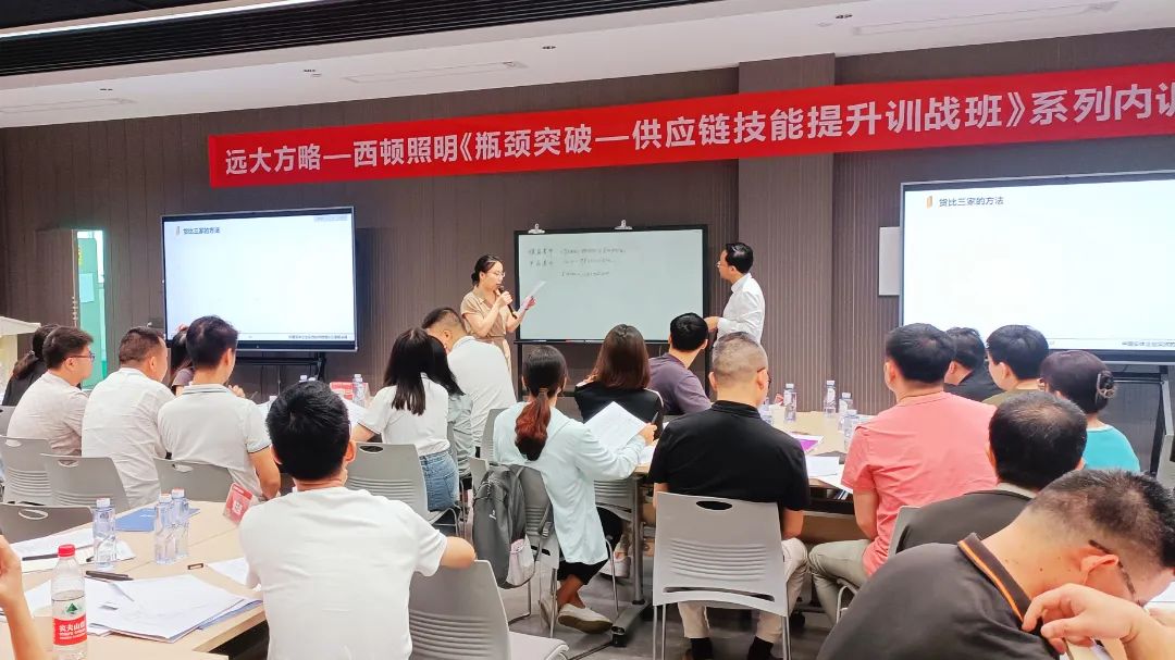 降成本,提效益,惠州市西頓工業(yè)發(fā)展有限公司(以下簡稱“西頓照明”)特邀遠大方略賦能企業(yè),開展《瓶頸突破-供應鏈技能提升訓戰(zhàn)班》項目制系列訓戰(zhàn)培訓,全面提升供應鏈管理者專業(yè)素養(yǎng)和綜合能力,優(yōu)化供應鏈體系,提升供應鏈整體效率。