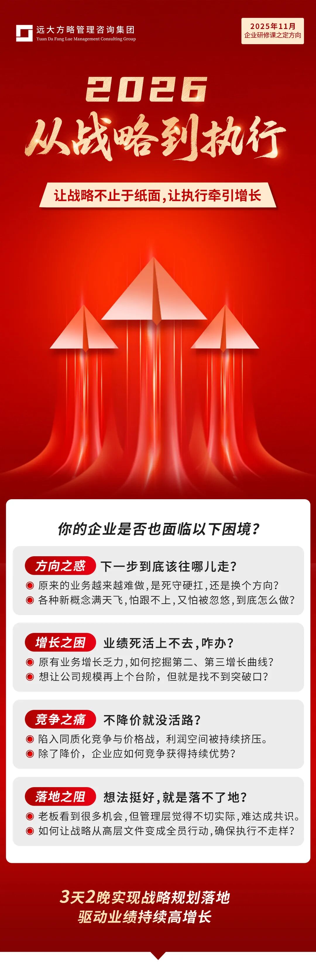 火熱報名中!11月27日-29日《2026從戰(zhàn)略到執(zhí)行》企業(yè)研修課