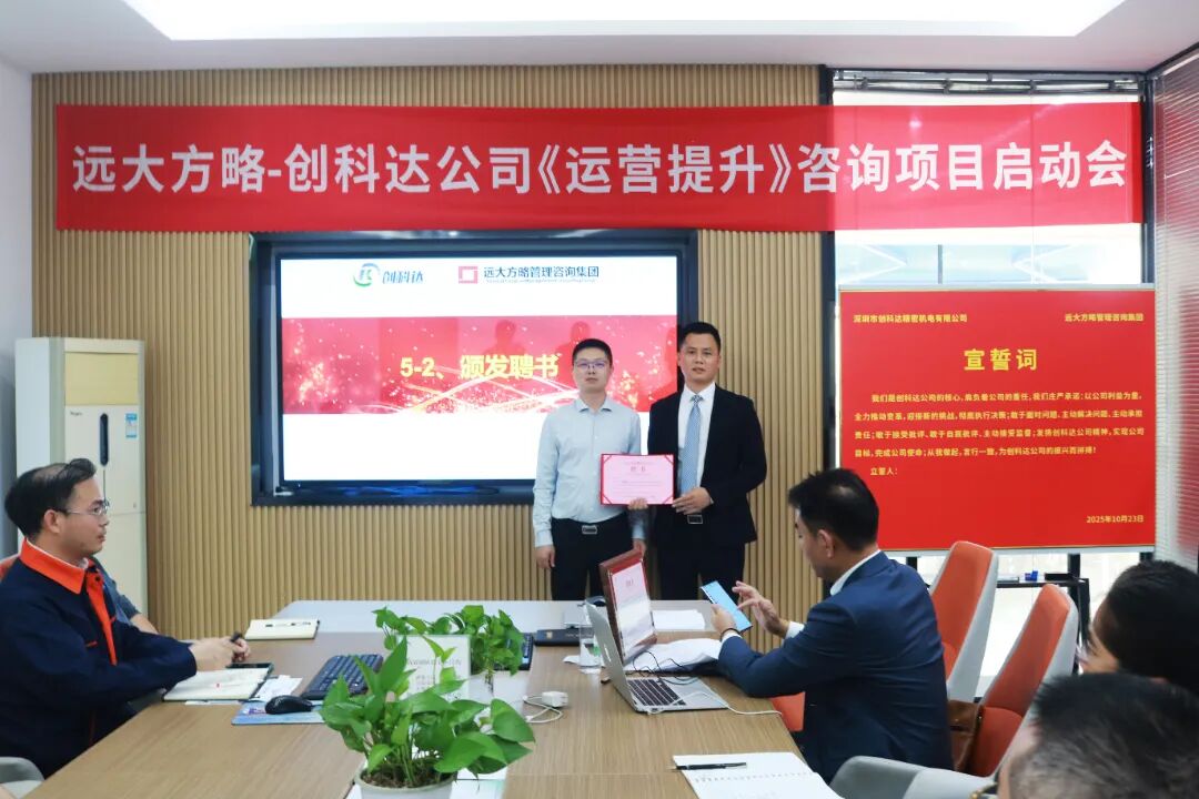 近日,深圳市創(chuàng)科達精密機電有限公司(以下簡稱“創(chuàng)科達”)攜手遠大方略啟動《卓越運營》咨詢項目,進行科學(xué)、系統(tǒng)的管理升級,優(yōu)化供應(yīng)鏈管理,減少庫存積壓,提升資金周轉(zhuǎn)率;現(xiàn)場 5S 管理營造干凈整潔的環(huán)境,提高效率與質(zhì)量,降低事故率;完善組織架構(gòu),提升團隊管理效率,合理配置資源,提高決策準確性。全方位提升運營管理水平,為企業(yè)高質(zhì)量發(fā)展注入強勁動力。