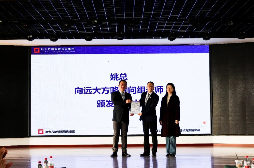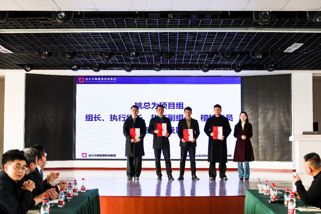 在明確了戰(zhàn)略方向和動員令之后,會議上也宣讀了此次任命,明確了項目指導委員會、項目管理辦公室以及各專項工作組的負責人和核心成員名單。會上,姚總為顧問團隊頒發(fā)了授權(quán)書,為項目組成員頒發(fā)了聘書,進一步明確了各崗位職責,堅定了變革的決心。