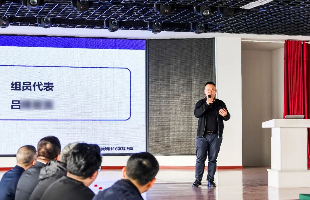 隨后項目組成員、公司聯(lián)席呂總作為代表發(fā)言。他稱作為項目組一員,深感使命光榮、責任重大,鄭重表態(tài)會嚴格遵守規(guī)章制度,以高度責任心和熱情投入變革,帶頭學習交流、分享經(jīng)驗、配合安排,承諾為變革成功貢獻全部力量。