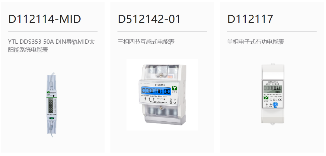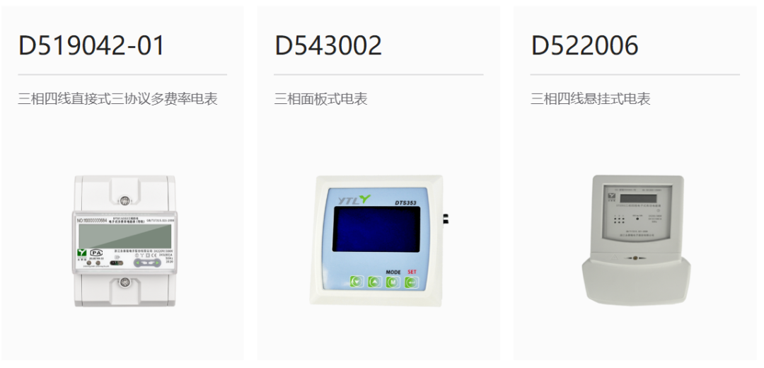 目前公司產(chǎn)品種類已達400多種,電能表功能規(guī)格的覆蓋面廣。產(chǎn)品系列從結(jié)構(gòu)上來分,主要有導軌式、分體式、面板式、吊勾式、插座式、傳統(tǒng)式等;覆蓋各類通訊方式,包括RF、IR、RS232、RS485、PLC、ZIGBEE、LoRa、藍牙、以太網(wǎng)、WIFI、NB-IoT、GPRS(2G/4G)/GSM,具備研發(fā)、測試和生產(chǎn)單、三相電子式電能表的能力。