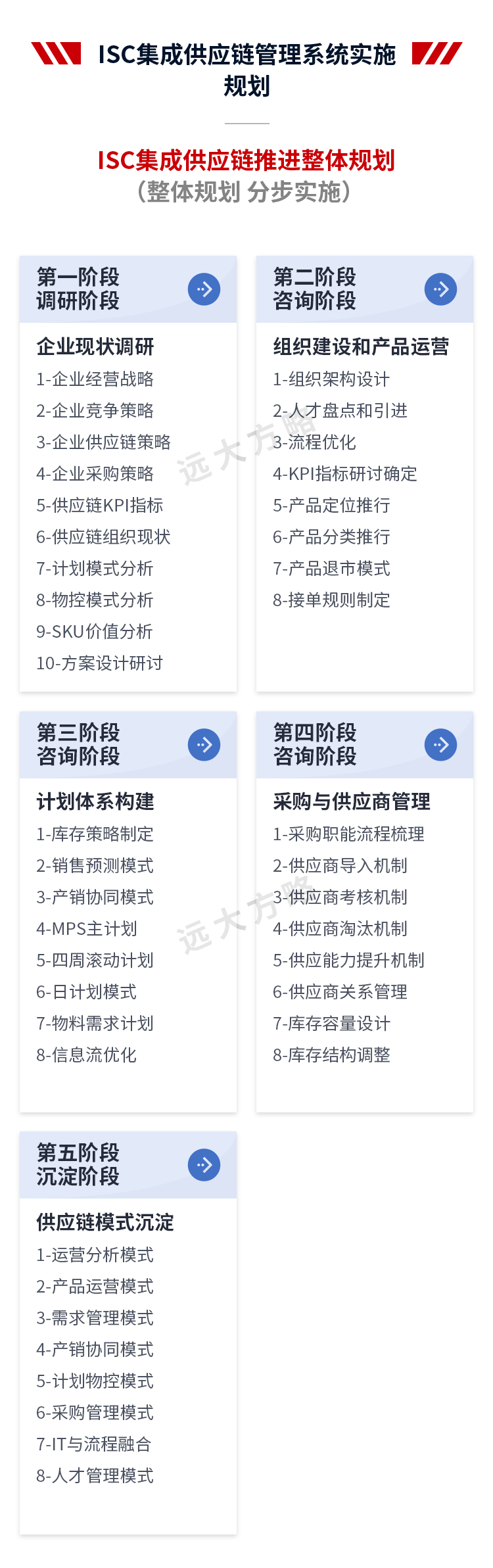 2、輔導(dǎo)模塊:推行ISC集成供應(yīng)鏈管理,主要圍繞產(chǎn)品運(yùn)營管理、接單規(guī)則和庫存管理、銷售預(yù)測管理、S&OP管理、公司計(jì)劃模式優(yōu)化、物料管理體系等
