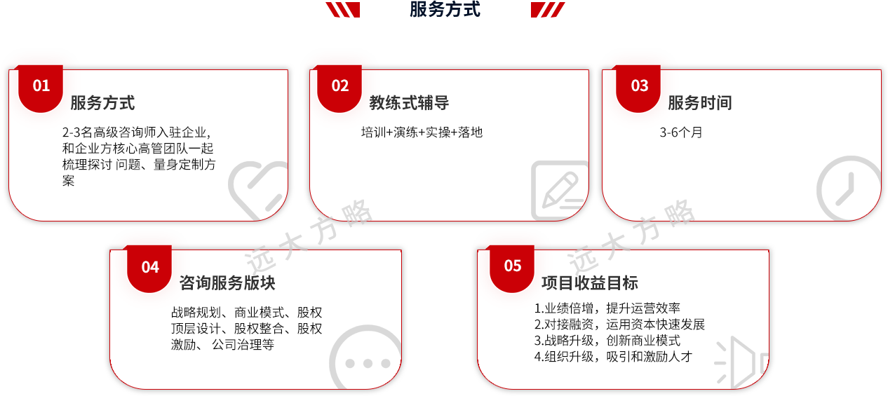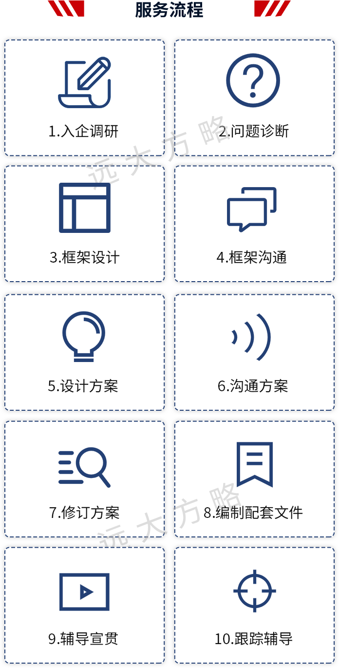 遠(yuǎn)大方略始終遵循不了解不理解企業(yè)的前提下絕不輕易下結(jié)論,正式制定改善方案前必須深入到業(yè)務(wù)一線了解和理解企業(yè)的運(yùn)營(yíng)情況。
